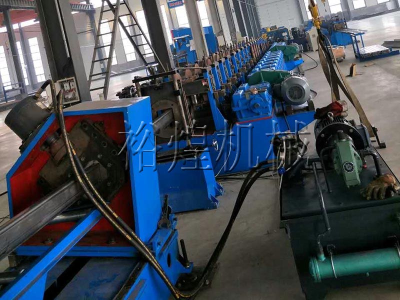 上料(人工) ―校平送料―儲(chǔ)料池―伺服送料、數(shù)控沖床自動(dòng)沖孔(不多于7種、直徑不大于27的圓孔及長(zhǎng)圓孔,異形孔單獨(dú)定制)―儲(chǔ)料池―冷彎成型―型材校直―測(cè)孔定位液壓自動(dòng)切斷―卸料(人工)